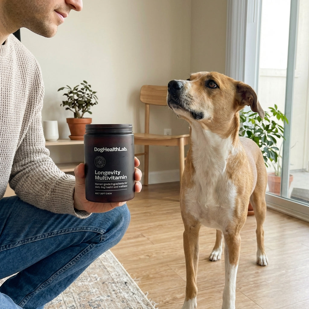 Human-grade multivitamin soft chews made to support your dog's daily nutrition and long-term wellness — all in one easy, tasty chew.